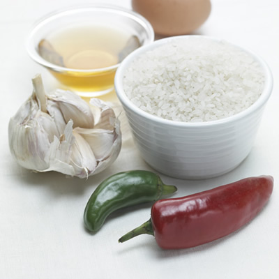 SK's egg infused Japanese Pearl Rice stirred fried with SK's Spicy Chilli Garlic.